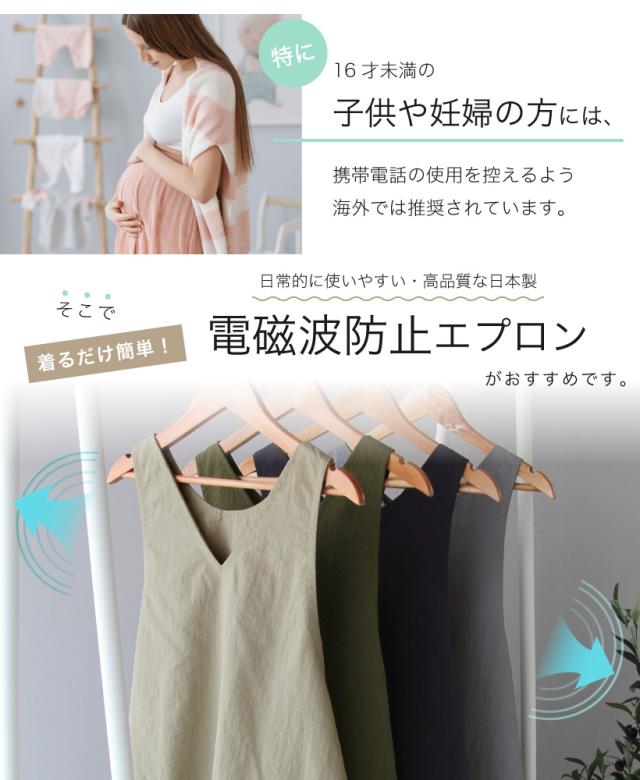 妊婦さんにおすすめ!家電などから発生する電磁波の影響を、緩和(防止)してくれる首掛けエプロン。本体には撥水加工を施しているのでお手入れも楽チン。VネックとUネックの前後で楽しめる2way仕様!。腰紐でサイズ調整可能なので産前・産後の体型が変わりやすい時期にもぴったり。シャカシャカとしたカジュアルなデザインはインテリアに馴染み、日常的に使いやすい。香川県の縫製工場で作る、高品質なエプロンは贈り物としてもおすすめです。