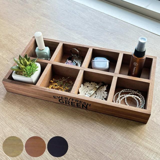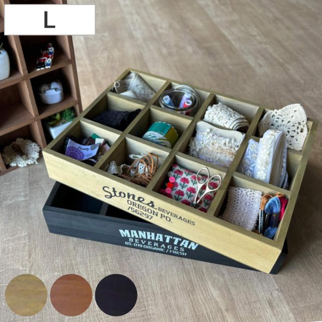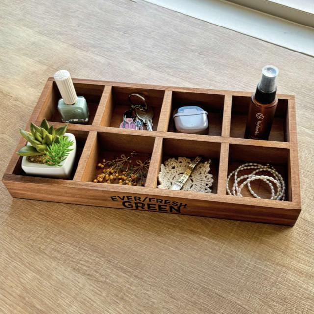 海外の業務用木箱をイメージして作られている、仕切り付き収納ボックスです。Sサイズは8マスに分かれています。デスクやキッチン、玄関などで普段よく使う小物類や、薬や裁縫道具などのしまう場所に迷いがちな細かい物の収納など、様々な用途で便利にお使いいただけます。インダストリアル・クラフト・ナチュラルなテイストに合わせても似合います。