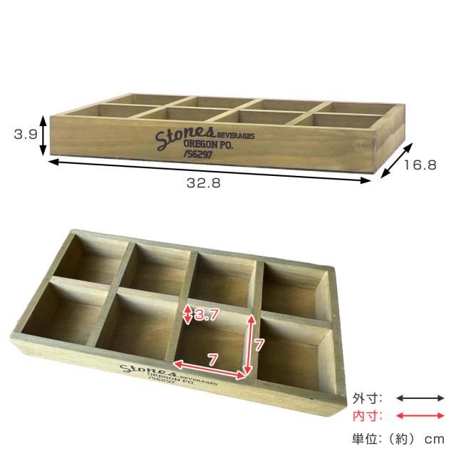 収納ボックス ポプラウッドパーテーションボックス S 小物入れ ( 幅32.8×奥行16.8×高さ3.9cm 収納 木製 仕切り付き ボックス 小物収納 卓上収納 文房具 レトロ ウッドボックス おしゃれ 木箱 整理整頓 片付け デスク周り )