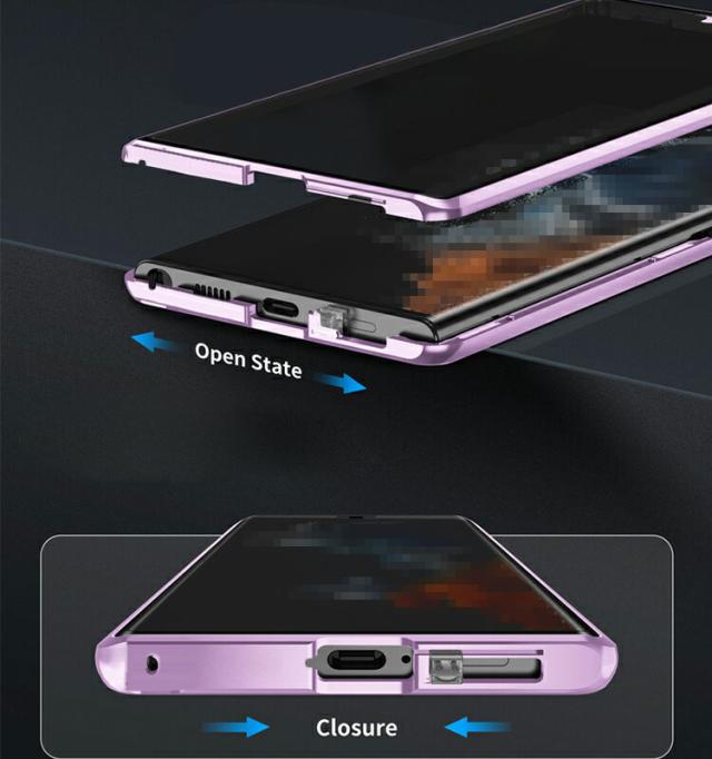 Galaxy S23 FE ケース アルミ バンパー かっこいい アルミバンパー 覗き見防止 クリア 透明 両前後強化ガラス マグネット式装着 Samsung サムスン ギャラクシー S23 FE アンドロイド おすすめ おしゃれ スマートフォン/スマフォ/スマホケース/カバー