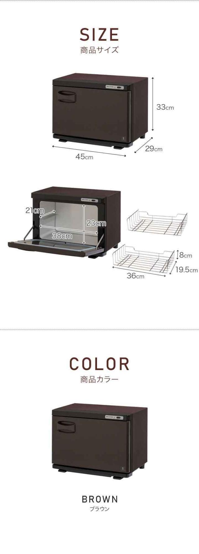 | サイズ: 外寸 : (約)45cm×29cm×33cm 庫内 : (約)38cm×21cm×23cm ラック : (約)36cm×19.5cm×8cm |