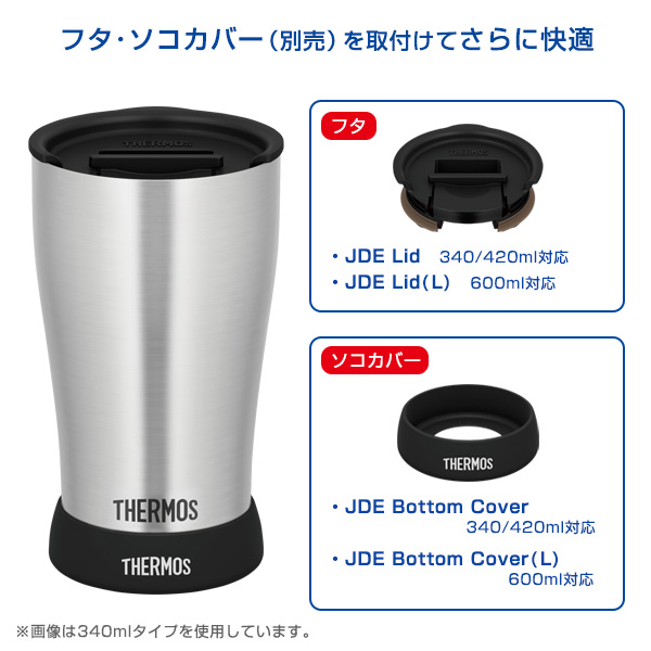 別売りのフタ・ソコカバーに対応サーモス製のタンブラー用フタ・ソコカバー(別売)を取り付け可能。対応製品は以下の通りです。