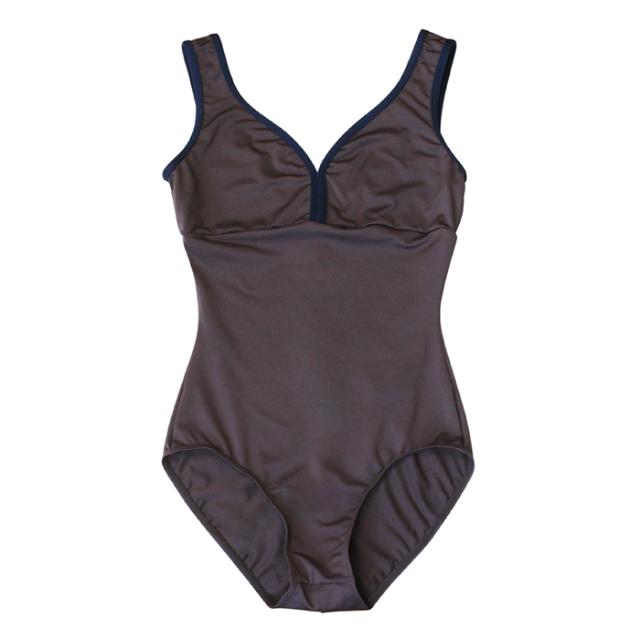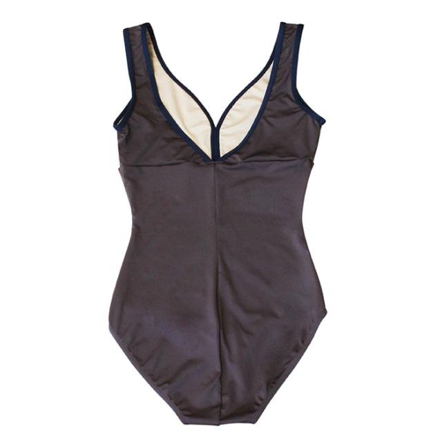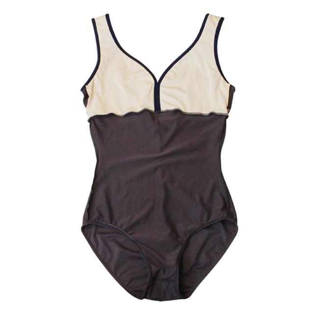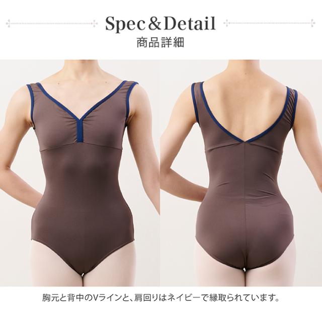 【20%off・在庫特価】バレエ レオタード 大人 スカートなし 日本製 プレーヌ バイカラー レオタード ノースリーブ 袖なし 茶 紺 スポーティー タンク Vネック レッスン 練習 着 シンプル 綺麗 145 150 155 160 165 170