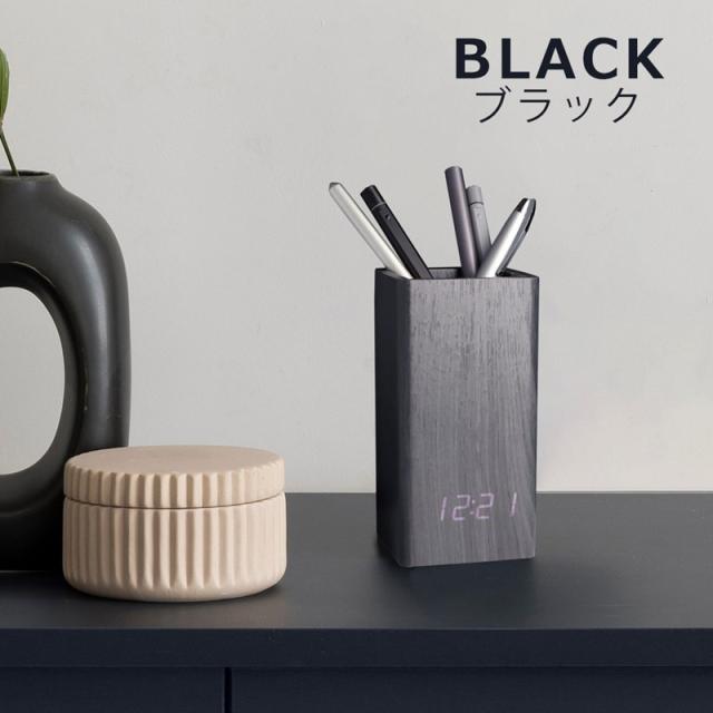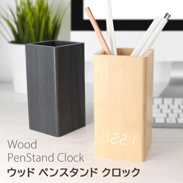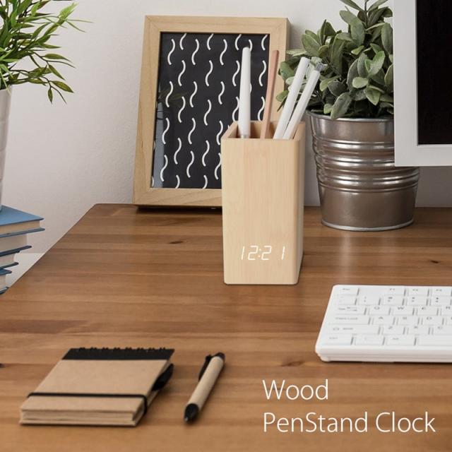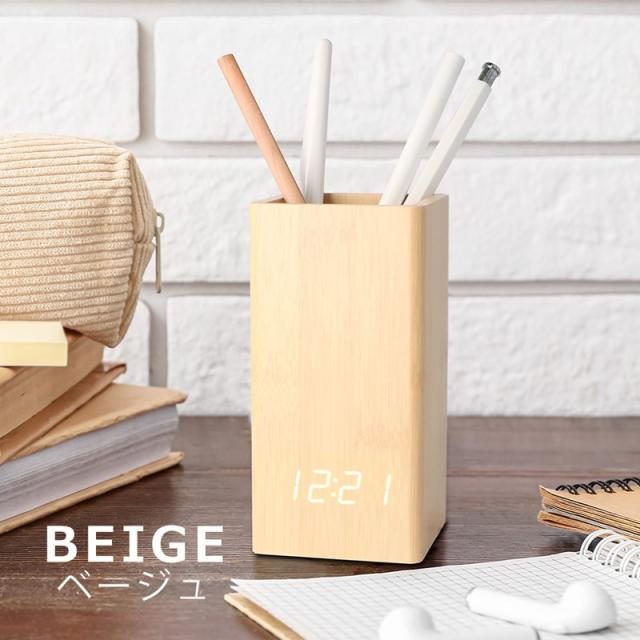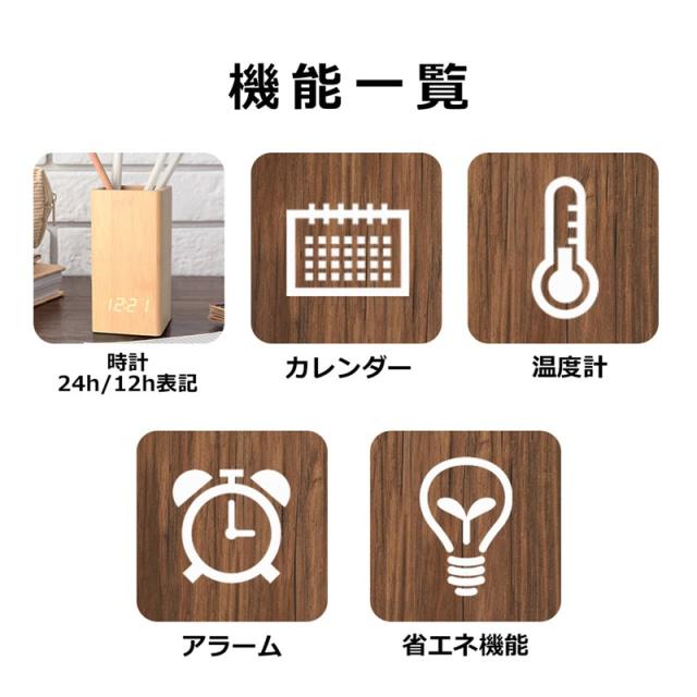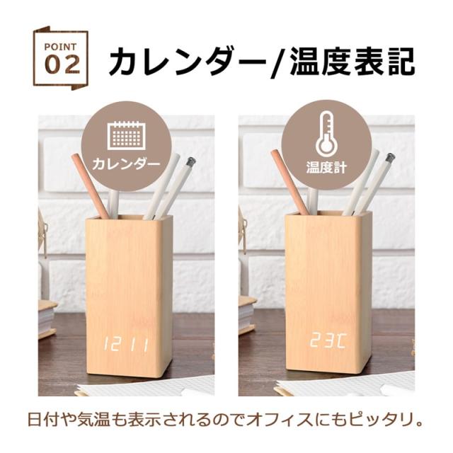 ウッドペンスタンドクロック ペンスタンド 高級感 小物いれ デスク収納 LEDクロック デジタル時計 置き時計 デジタル時計 温度計 カレンダー クロック 小物入れ 目覚まし時計 アラーム おしゃれ 小物収納 デスク収納 北欧風 置き時計 木製 ホームクロック LED