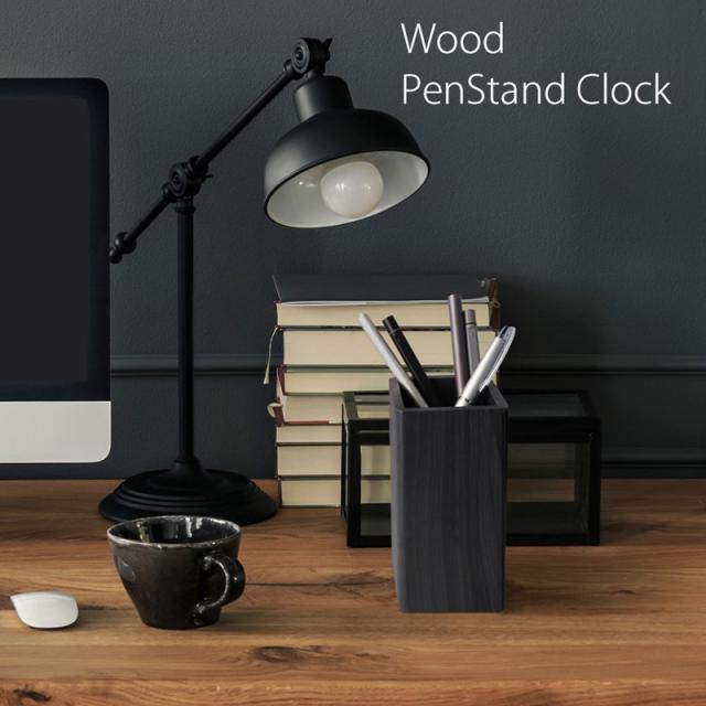 木製のペンスタンドと置時計が一緒になった、インテリアとしても実用品としても使えるウッドペンスタンドクロックです。