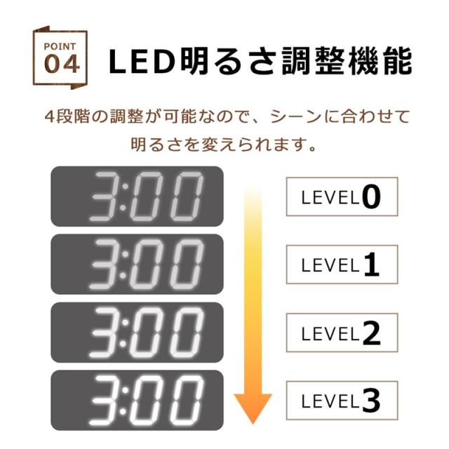 デジタル時計部分はLEDの明るさを4段階調節可能。