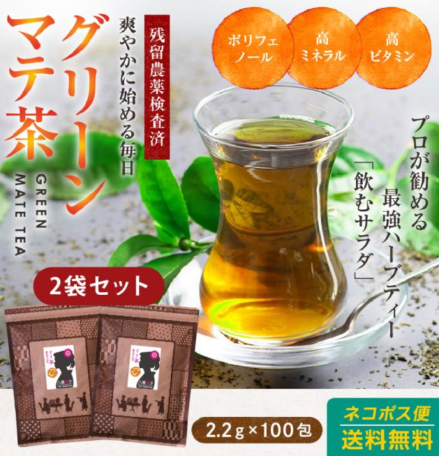 (2袋セット)マテ茶(グリーンマテ茶)ティーパック バッグ 2.2g×100包 送料無料 飲むサラダ ハーブティー 健康茶 美容 ダイエット