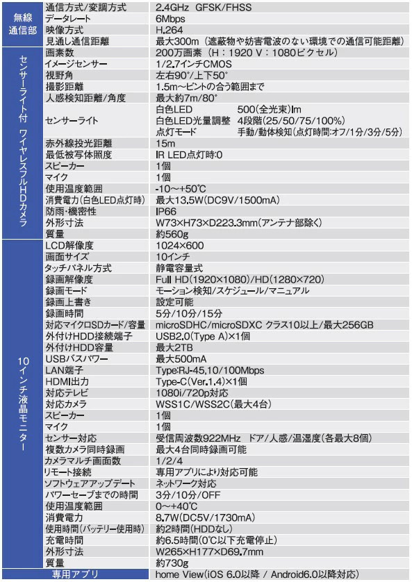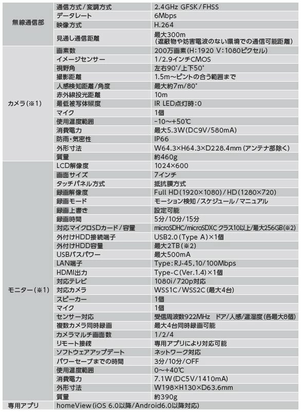 microSDや外付けHDDへの録画や、スマートフォン・タブレットで、センサー・カメラの情報・映像を確認できます。