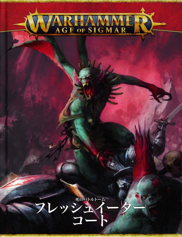 ゲーム「ウォーハンマー:エイジ・オヴ・シグマー」フレッシュイーター・コートの勢力の背景設定、アートワーク、塗装ミニチュアの展示写真、ゲームルールを収録する書籍(88ページ)。