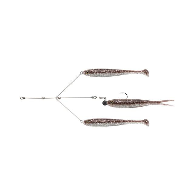 対になって伸びたアームは固定されていない為、弱いアクションで漂いベイトの群れを演出。