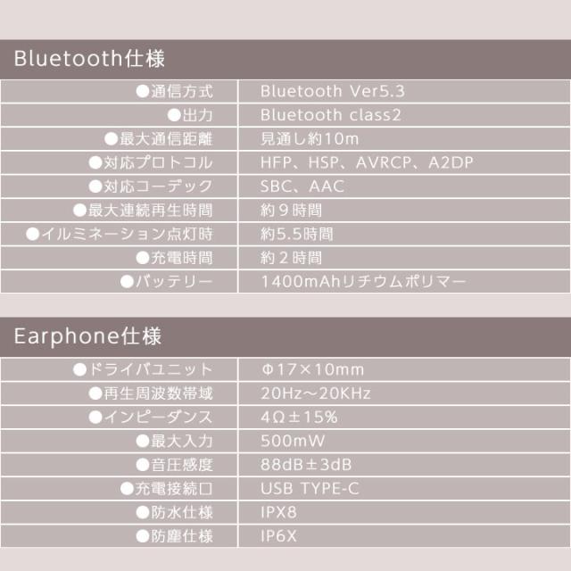 | 最大連続再生時間 | 約9時間/イルミネーション点灯時:約5.5時間 |