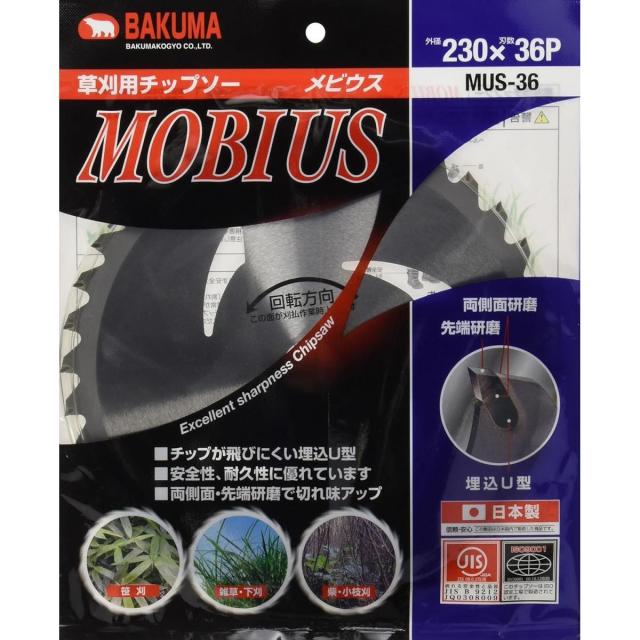 バクマ 草刈チップソー メビウス 230x36P MUS-36 日本製 チップソー 埋込U型 MOBIUS