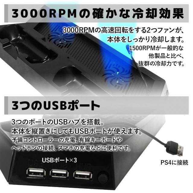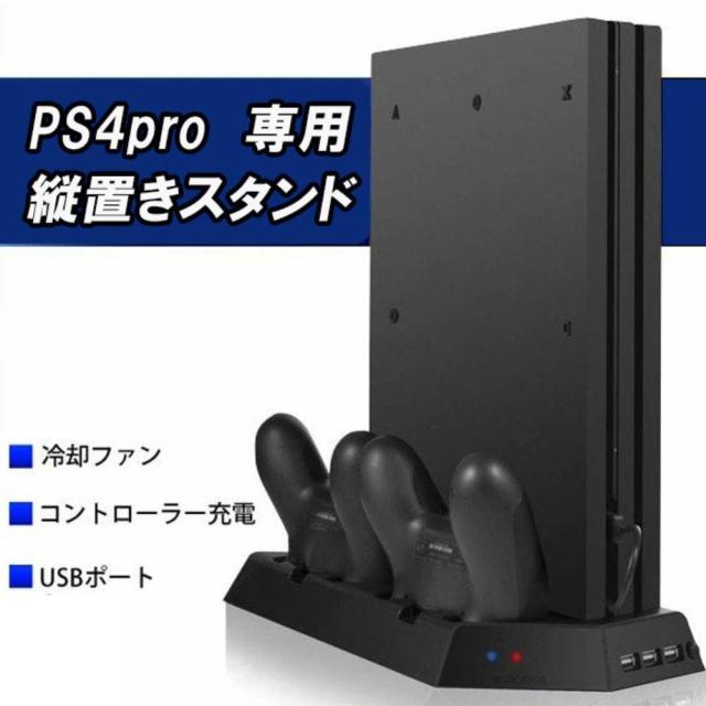 ps4pro 縦置きスタンド 専用 スタンド 充電 2台充電 USBハブ 3ポート 冷却クーラー クーラー ファン 冷却ファン 多機能 縦置き 静音 USB コントローラー プレイステーション4pro プレステ PS4 pro