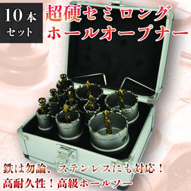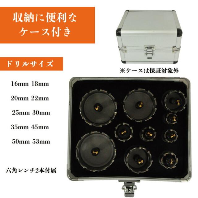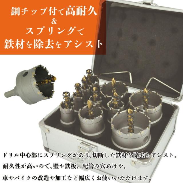 ホルソー セット 超硬ホルソー ホルソーセット 【 10本セット アルミケース付き 】 ホールソー ホルソーキット キット 超硬 鉄板 鋼板 ステンレス用 金属用 壁 板 穴 穴あけ 工具 日曜大工 DIY