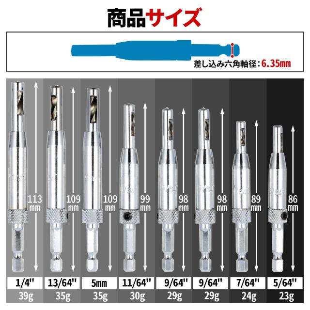 セット内容:下穴用ドリルセット×8本、六角レンチ×1本