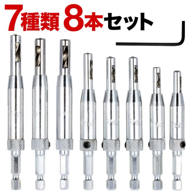ドリルビット セット 電動ドライバー 電動ドリル 電動ドリルドライバー ドリル ドライバー 8本 8pcs セット 7種類 蝶番 ヒンジ 丁番 取り付け センタードリルビット ビットセット センター出し