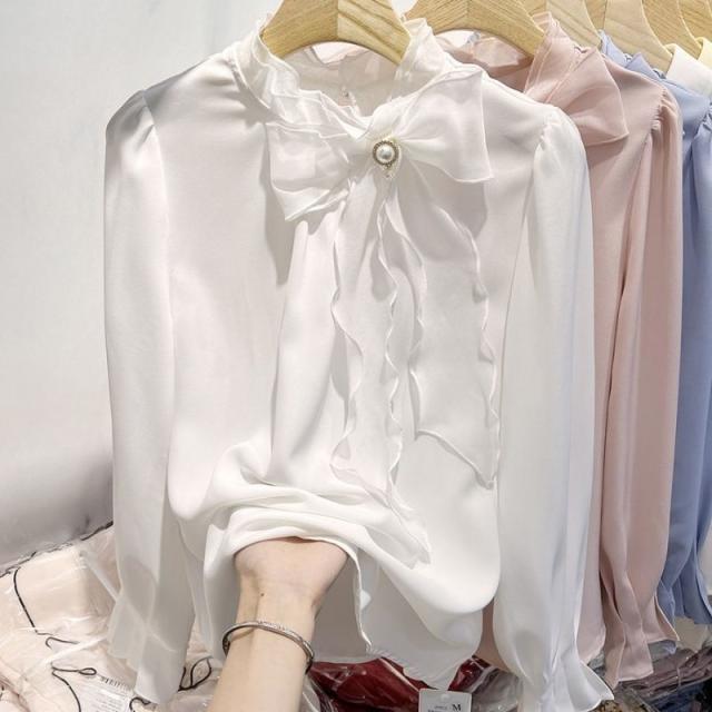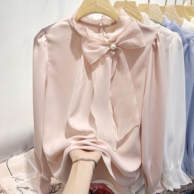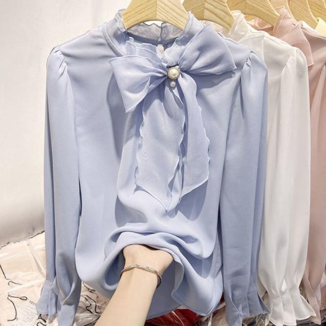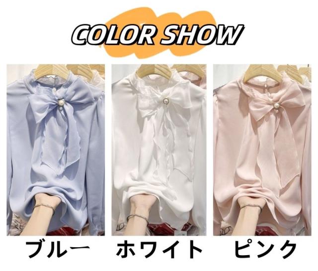 ブラウス レディース 長袖 トップス シフォン シャツ チュニック 無地 体型カバー 通勤 OL おしゃれ 春夏