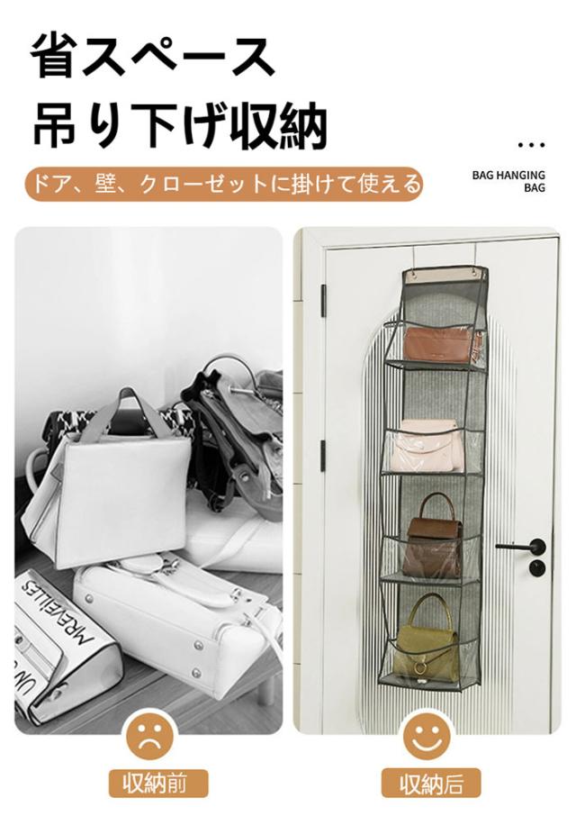 「クーポン配布中」「即納」ウォールポケット ドア掛け収納 バッグ収納 4/6段大容量 カバン収納 クローゼット 吊り下げ収納 隙間収納 帽子掛け 靴下 下着 ズボン 衣類収納ラック 折りたたみ 整理整頓 おしゃれ 北欧 新生活 ラック 棚