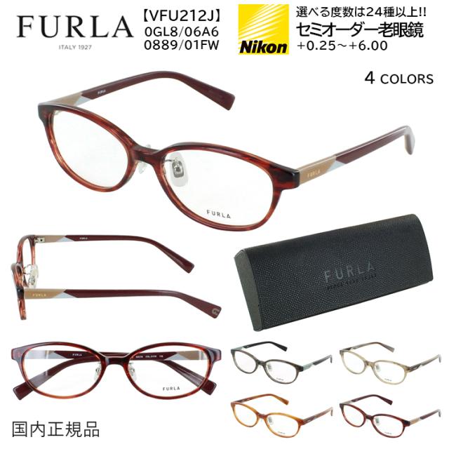 老眼鏡 レディース おしゃれ フルラ ブランド リーディンググラス 選べる度数 左右度数違い 乱視対応 シニアグラス オーバル セルフレーム 薄型 非球面レンズ FURLA VFU212J 0GL8 グレー 06A6 クリアベージュ 0889 ブラウン 01FW ボルドー 女性 40代 50代 60代