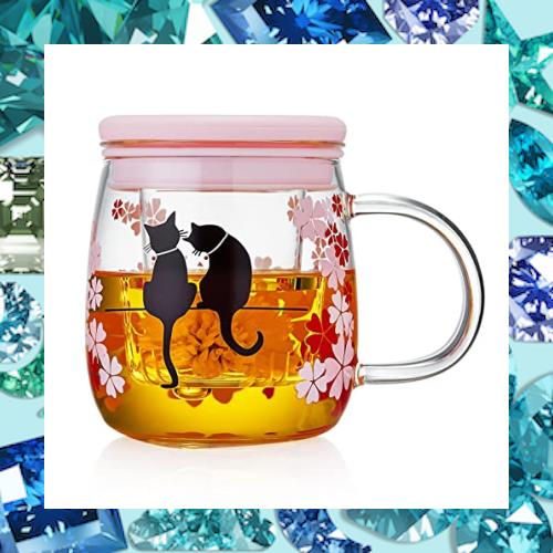 ポカロティー 耐熱ガラス茶こし付きマグカップ 透明 紅茶 温度で色が変わる桜猫カップ 和桜 春の日 桜満開 不思議な猫 幸せ 食洗機対応
