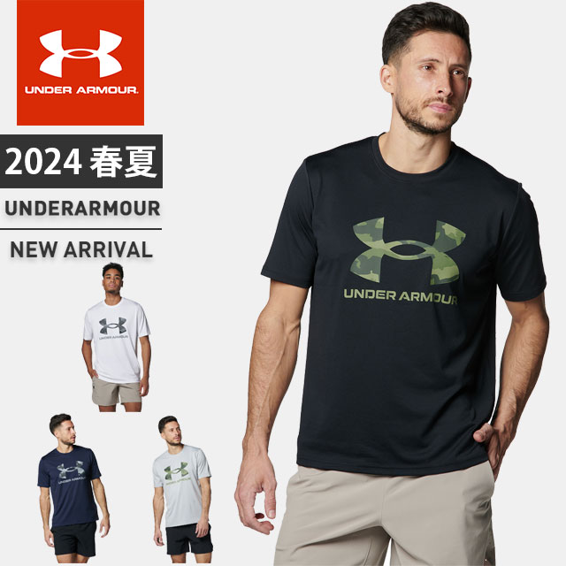 ☆ネコポスアンダーアーマー メンズ UA テック カモ ビッグロゴ ショートスリーブ Tシャツ 半袖 丸首 定番 ルーズ カモ柄 迷彩 吸汗速乾 抗菌防臭 伸縮性 トレーニング ランニング 運動 カジュアル UNDER ARMOUR 1384797