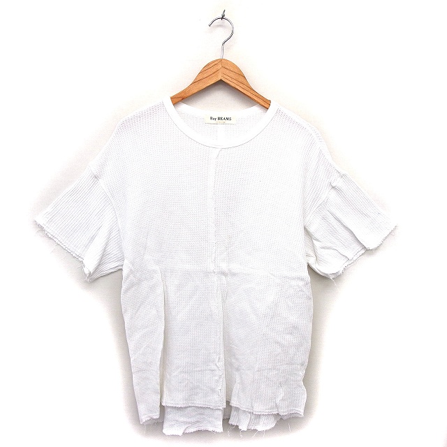 【中古】レイビームス Ray Beams チュニック カットソー ニット ラウンドヘム ワッフル 透け感 五分袖 白 ホワイト
