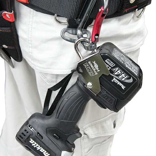 インパクトドライバーに取り付け、腰回りのカラビナに取り付けができるので携帯に便利です。