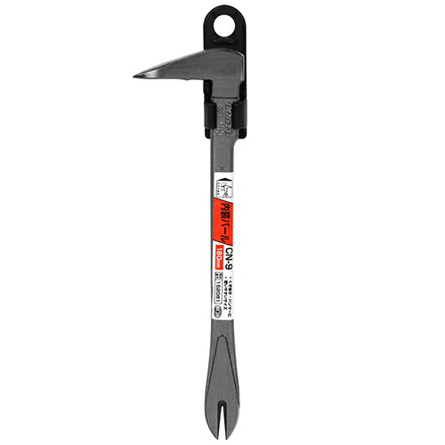 釘抜き、仮枠・内装作業。ハンマーにもなります。尾部の厚みが薄いため、釘がひろいやすく、はがし作業にも便利です。尾部の裏が平らなため、板材を傷めません。