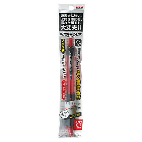 | ●インク色:赤。●ボール径:0.7mm。●ラバーグリップ付。●ノック式。●加圧ボールペン。●替芯:SNP-7。 |