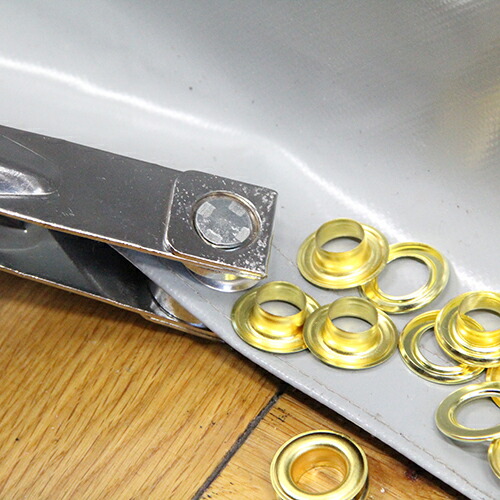 | テント・シート等の穴の補強・補修。ハトメを取り付けることにより、いつまでも丈夫に品物を長持ちさせるのに大変役立ちます。真鍮製ハトメは強力にカシメられ、幌・シート等の力のかかる物に最適です。アルミ製ハトメは取付けが簡単でサビにくいのでエプロンや製本に最適です。 |