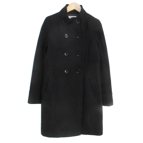 【中古】ナチュラルビューティーベーシック コート ロング丈 スタンドカラー ダブルボタン 総柄 S 黒 レディース