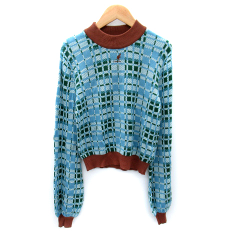 【中古】ジュエティ × カンゴール ニット カットソー 長袖 ハイネック チェック柄 マルチカラー M 青 緑 レディース