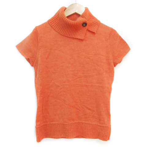 【中古】ボールジー トゥモローランド ニット カットソー 半袖 タートルネック 総柄 F オレンジ /FF49 レディース