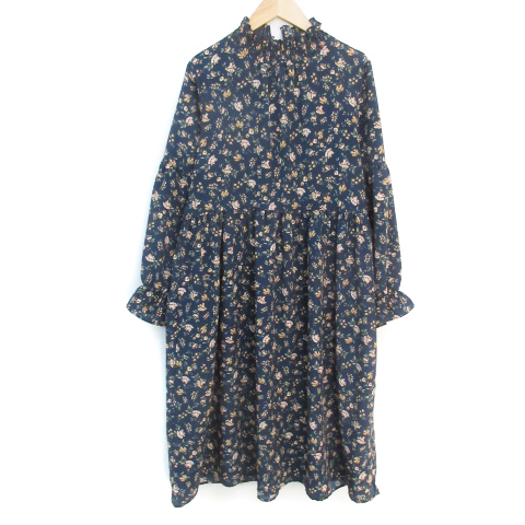 【中古】エヘカソポ サマンサモスモス フレアワンピース ロング丈 長袖 ハイネック 花柄 F 紺 ベージュ レディース