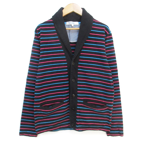【中古】ミュートビート ジャケット ミドル丈 ショールカラー シングルボタン マルチボーダー柄 2 黒 ピンク メンズ