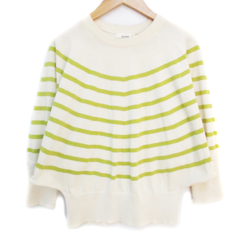 【中古】ビームスハート ニット カットソー 九分袖 ドルマンスリーブ ボーダー柄 F ライトベージュ ■MO レディース