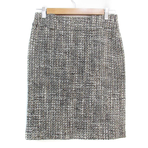 【中古】エムプルミエ ツイードスカート タイトスカート ひざ丈 ウール スリット マルチカラー 38 黒 白 レディース