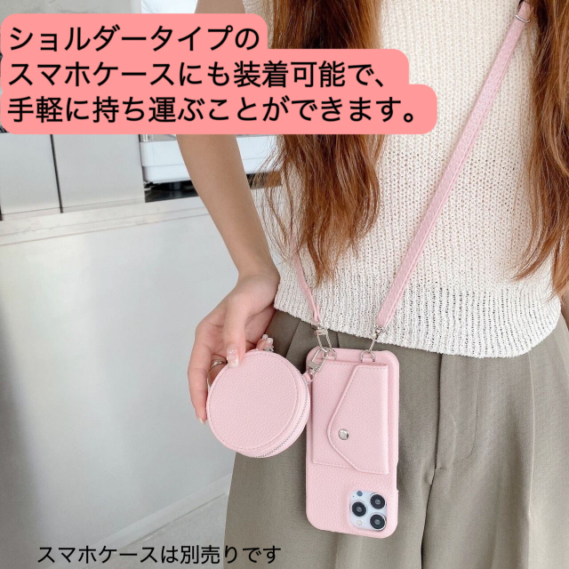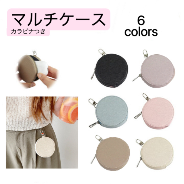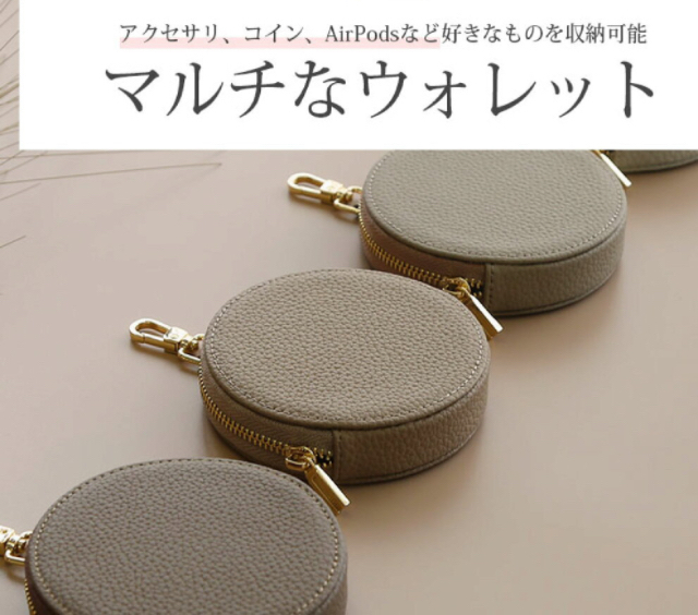※6色のカラーバリエーションから選べるレザー素材の小物入れです。AirPods 、小銭、充電コートやリップクリームなどの小物も一緒に持ち運ぶことができます。ショルダータイプのスマホケースにも装着可能で、手軽に持ち運ぶことができます。