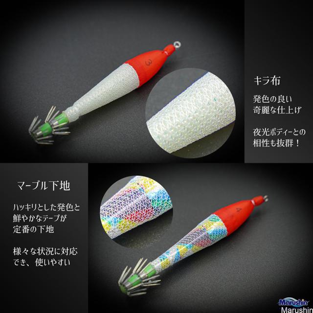キラ布はボディーの発光が強く出て、マーブルテープボディーは発光が抑え気味です。