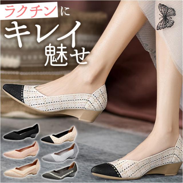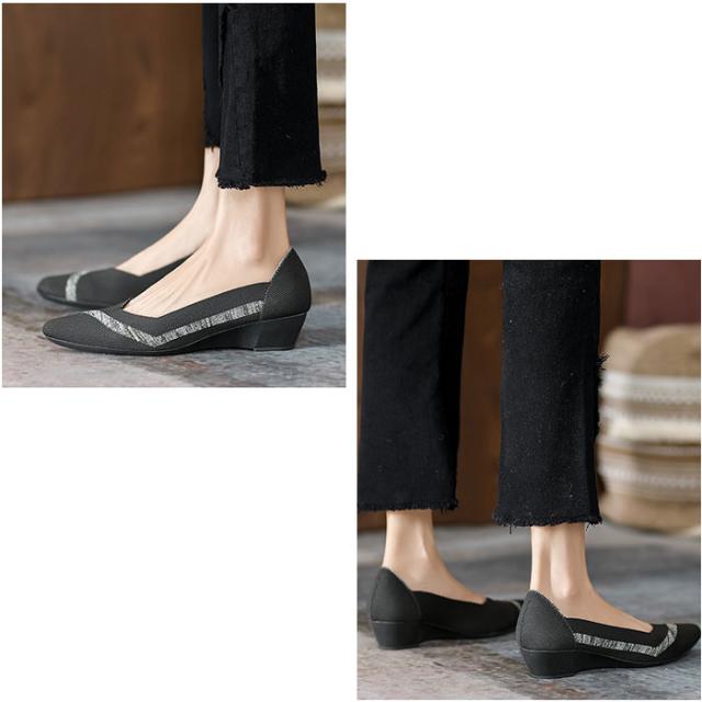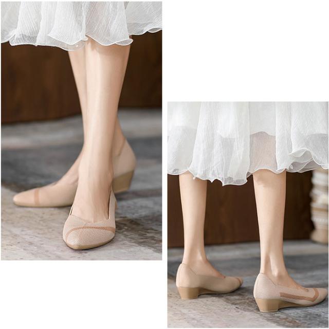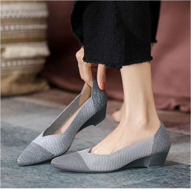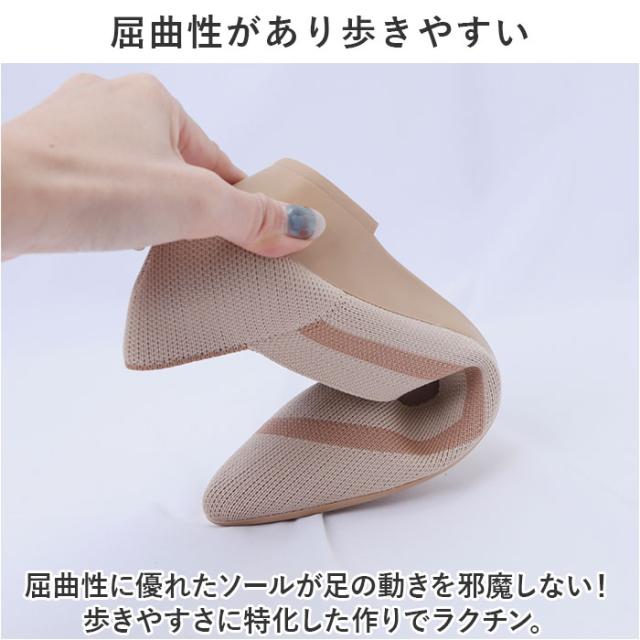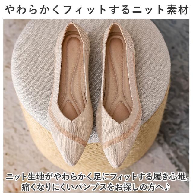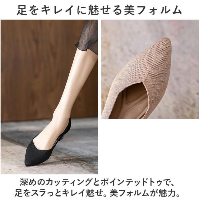 パンプス ニット 痛くない レディース 通販 フラットシューズ ぺたんこ レディース靴 婦人靴 ニット素材 ウェッジソール ポインテッドトゥ ローヒール 歩きやすい 柔らか やわらかい