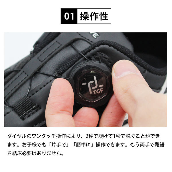 ダイヤル調整ができることで靴紐よりも簡単に脱ぎ履きができます。