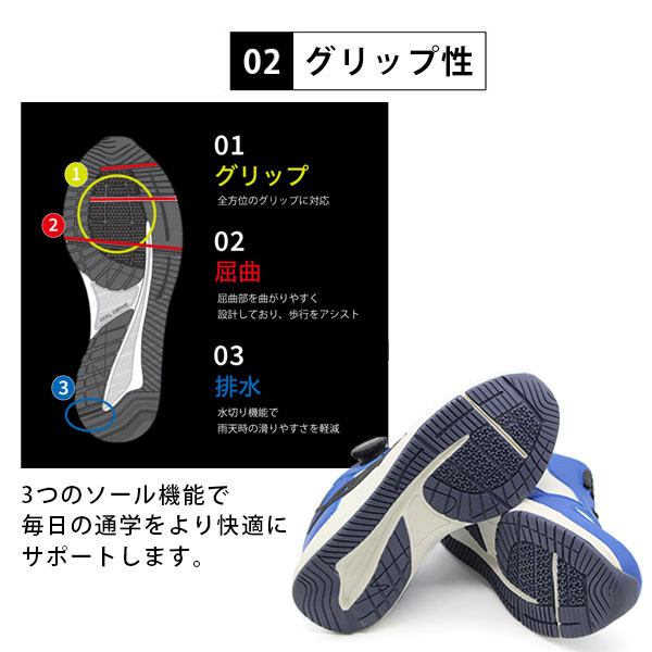 通園通学に合わせたこだわりの新ソール。グリップ、屈曲、排水にこだわり毎日使いたい一足になりました。