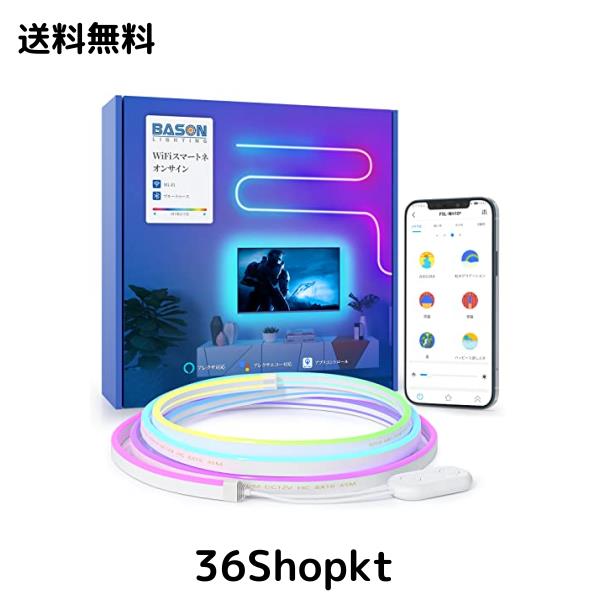 BASON ネオンライト Alexa/Google対応 EL蛍光チューブ管 防水RGBIC LEDテープライト 自己設計可能&色認識可能 プラグアンドプレイ 音楽同
