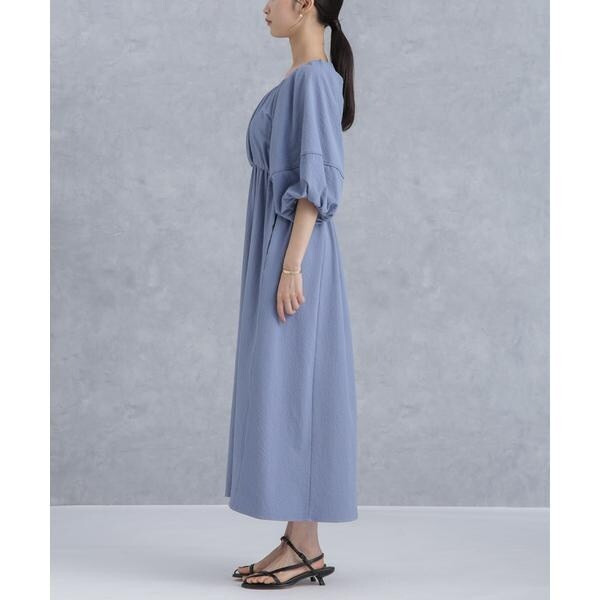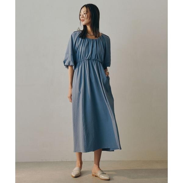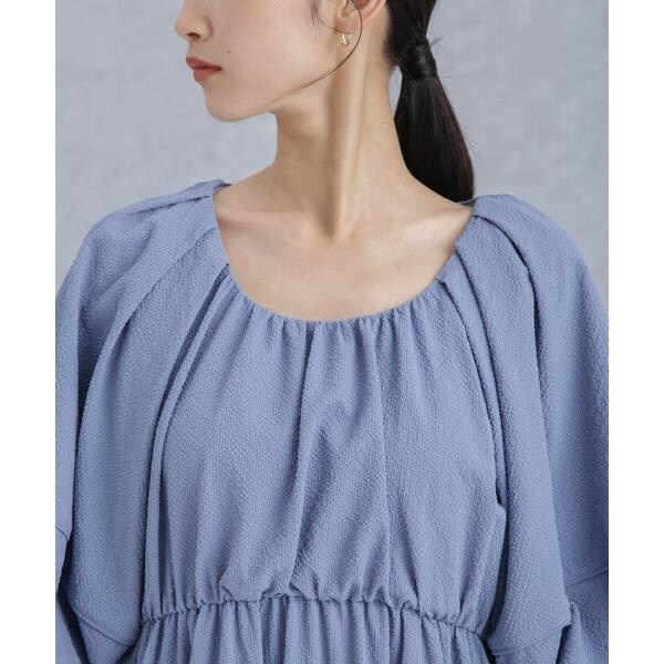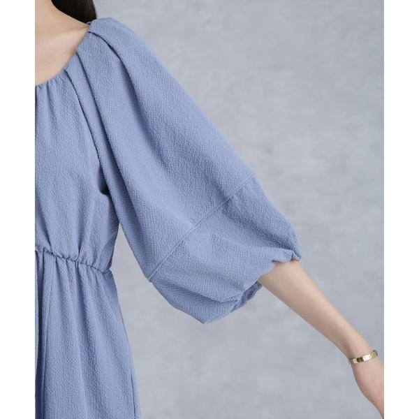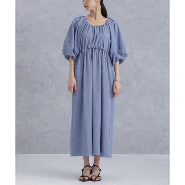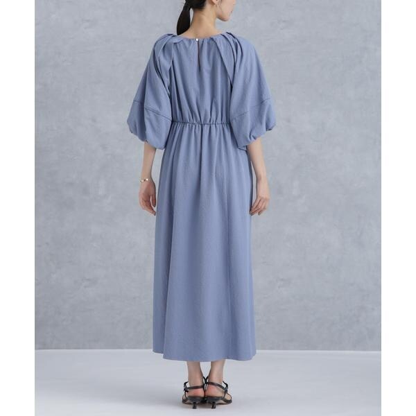 ボリュームスリーブが目を惹くワンピース。肩タックとランタンスリーブのような袖が華やかなシルエットのデザイン。高めの位置で絞ったウエストは足長効果も◎。着るだけでサマになるから、ワードローブに追加しておくと重宝しそう!