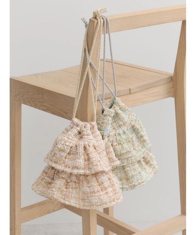 フリルツイード巾着バッグ