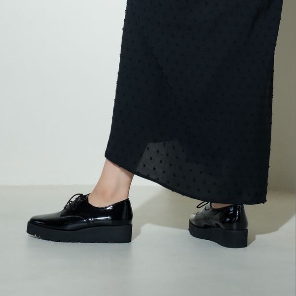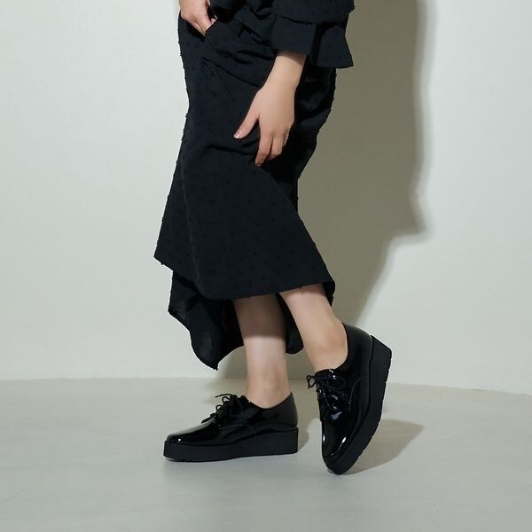 ・厚底ウエッジソールにスッキリアーモンドトゥで大人顔