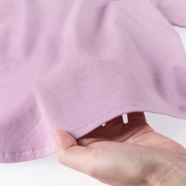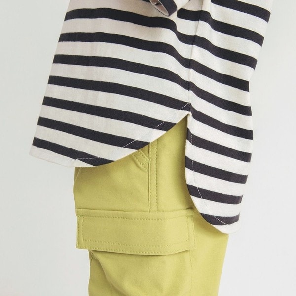 お尻が隠れる丁度いい丈感で、そのまま1枚でゆるっと着たり、前の裾をタックインするスタイリングも