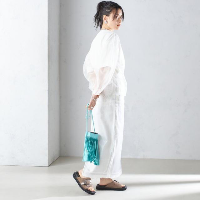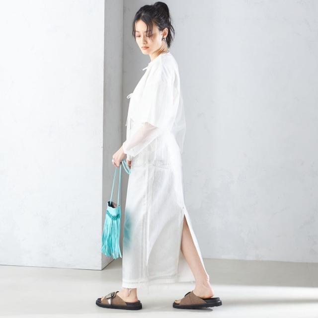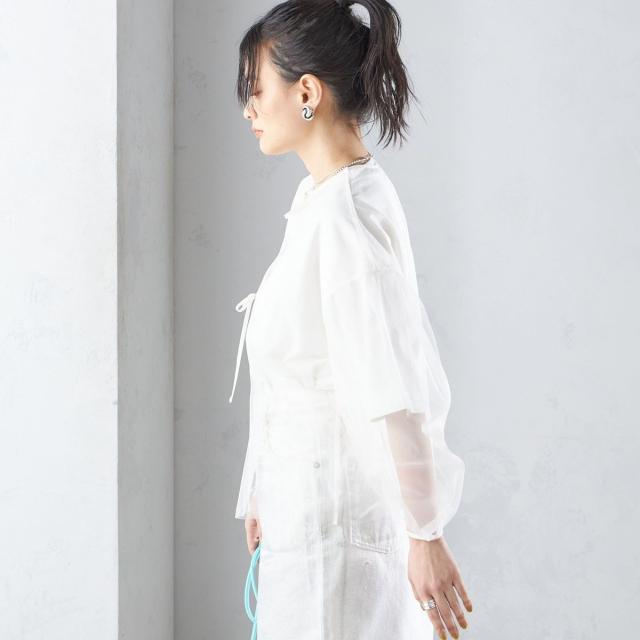 ノースリーブやキャミソール、プリントTなど、お好きなテイストにプラスしたレイヤードスタイルがおすすめです。