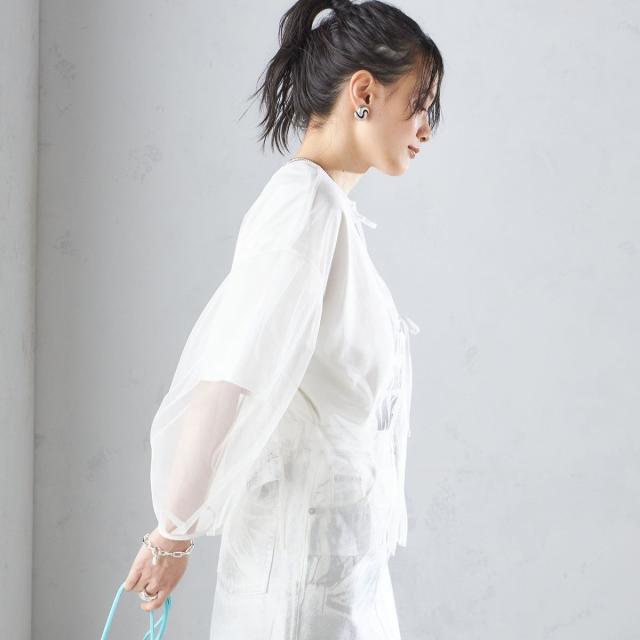 シップス(SHIPS)/〈手洗い可能〉ソフト チュール 袖 ボリューム 2WAY ブラウス◇