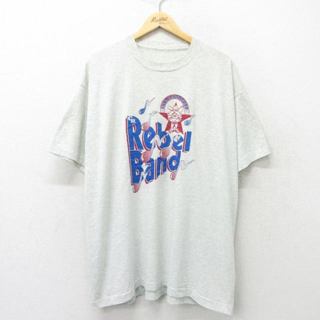 古着 半袖 ビンテージ Tシャツ メンズ 90年代 90s Rebel Band 大きいサイズ クルーネック 薄グレー 霜降り XLサイズ 中古 中古 古着